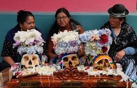 Na Bolívia, encontramos uma expressão singular: a festa das Fiesta de las Ñatitas — culto aos crânios decorados, cheios de flores e cor, que simboliza uma presença contínua dos falecidos na vida dos vivos.